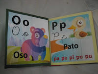 recorté las imágenes de las letras para su lectura, las pegué en cartulinas previamente recortadas ajustadas al tamaño de las imágenes, y les hice dos agujeritos y con un fastener TACHÁN, a mi alumno le hice su librito de iniciación a la lectura.
