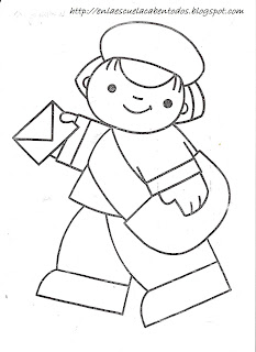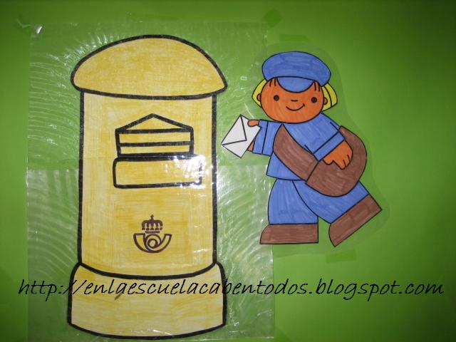 La idea se le ocurrió a mi Super compi Rosa de Infantil, y yo añadí la idea de ponerle al cartero un buzón. (En el cual, hacemos una abertura para introducir los papeles). Espero os guste nuestra idea.
