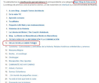 Aquí añado otros blogs que están en la categoria de mejor blog de Educación