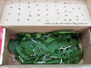 V. trajo su cajita con sus nuevos amiguitos, los gusanos. Y empezamos a conocerlos: qué hacen, qué comen, su textura...