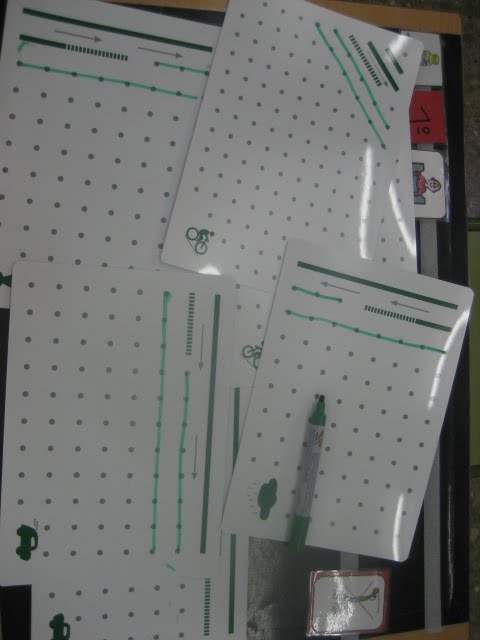 Se trata de unas láminas lavables (de plástico, estilo a pizarra veleda) en las que mi V. práctica el trazo diariamente, (con rotulador no permanente) pudiendo volver a empezar cuando quiera, ya que nos permite borrarlo.