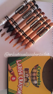Son de la marca CRAYOLA, y la caja contiene 8 ceras de colores de diferentes tonalidades carne.